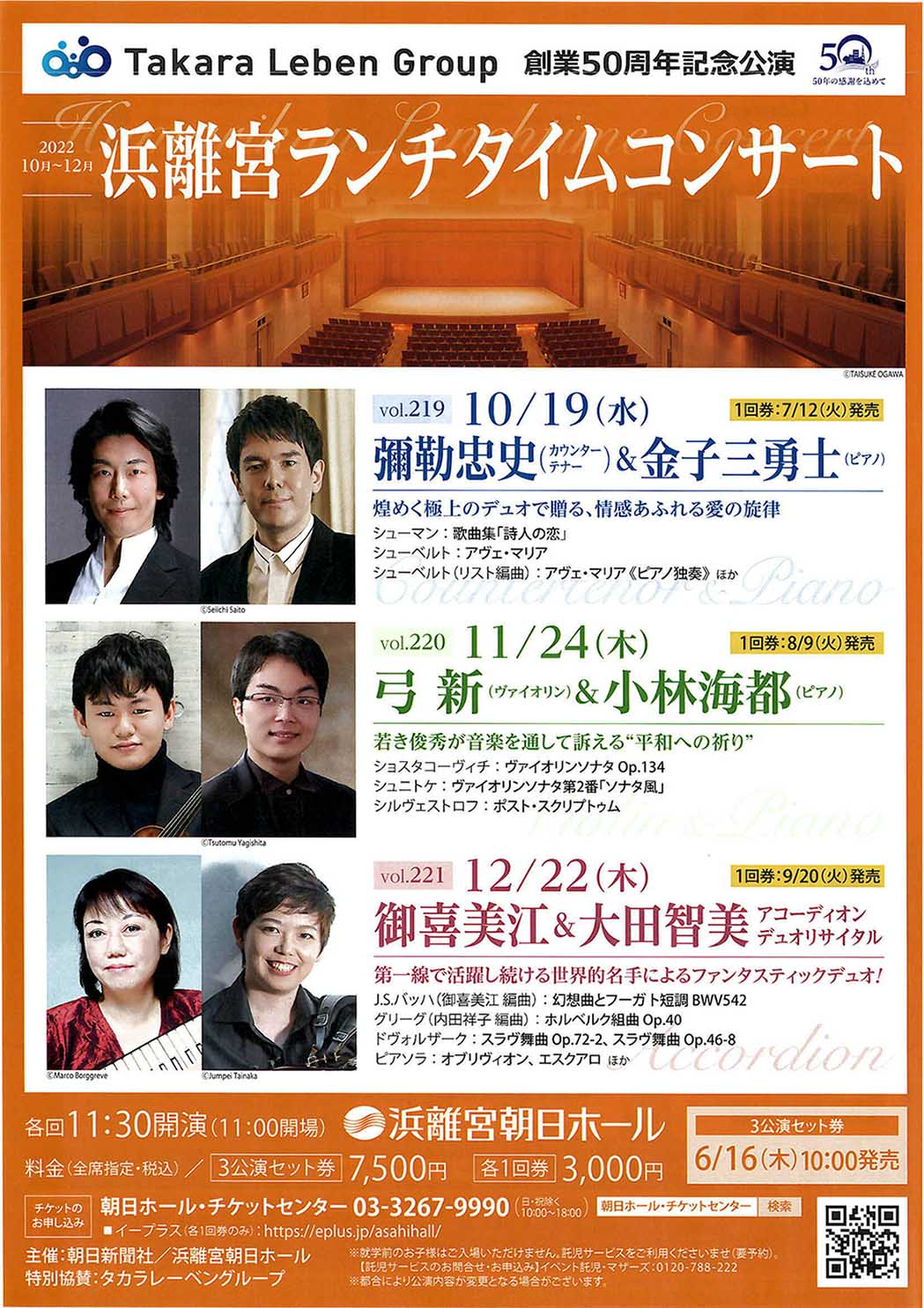 チケット 朝日ホールチケットセンター 03-3267-9990